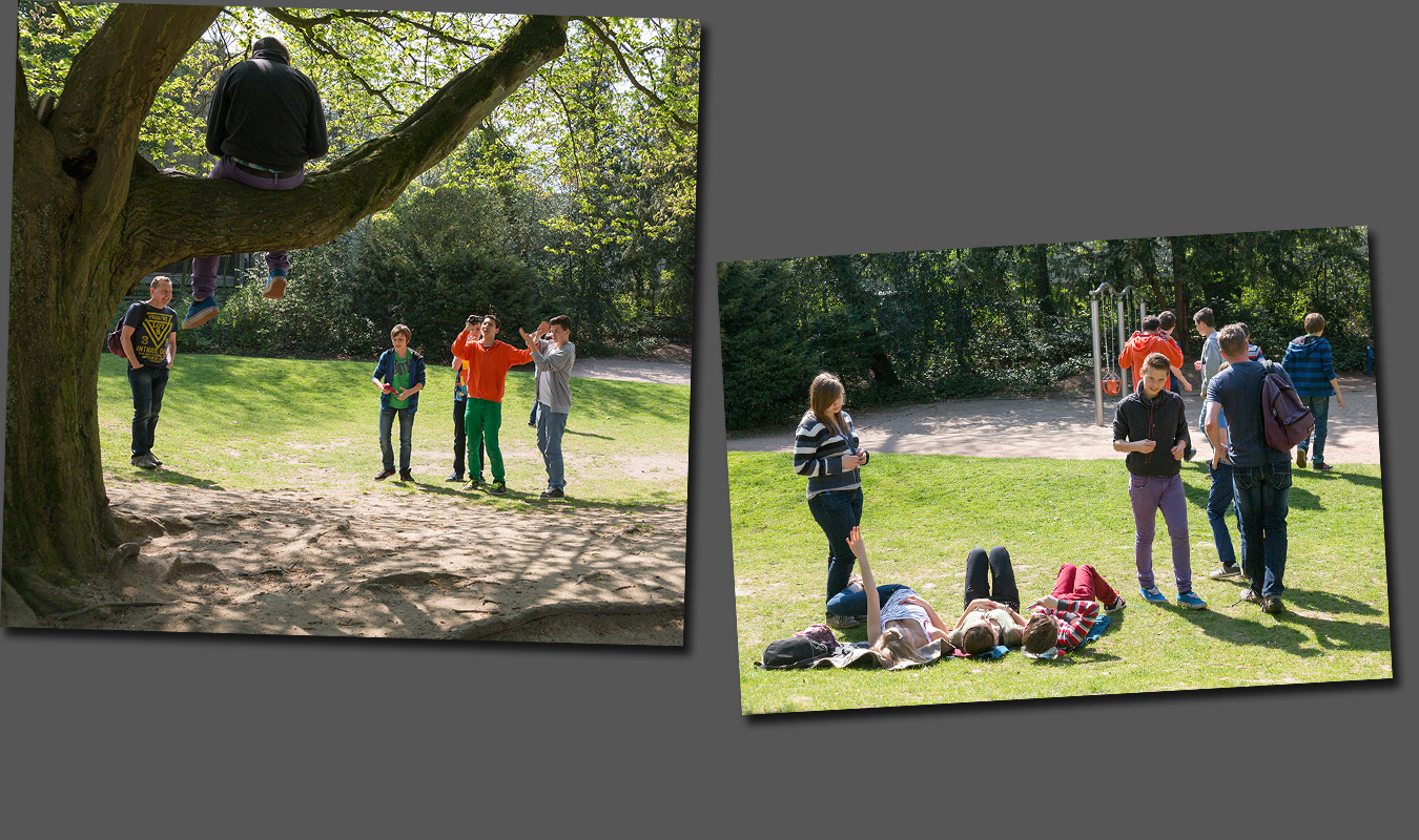 Eine Schulklasse beim Videodreh, na ja, ein Teil ruht sich nur aus